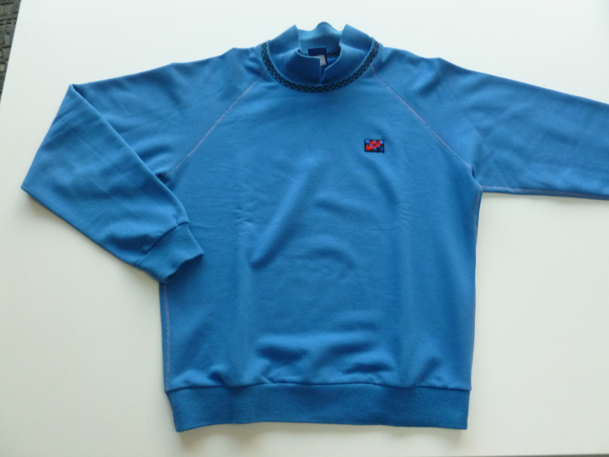 Les ensembles en molleton déclinés en 5 couleurs représentent la gamme la plus populaire, avec un signe distinctif très particulier représenté par un damier noir et bleu enroulé sur la partie arrière du cou. A noter également deux bandes en bord côte allant du cou aux aiselles. Les poches sont également très caractéristiques de par leur forme mais aussi et surtout par leur zip de fermeture dont un des rabats est cousu par dessous et l'autre directement par dessus. Les pantalons ont également des poches du même genre mais sans zip de fermeture.